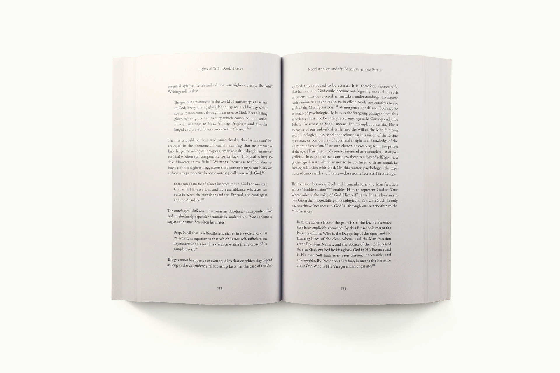 Cover and layout for Lights of Irfan publication (English and Farsi)