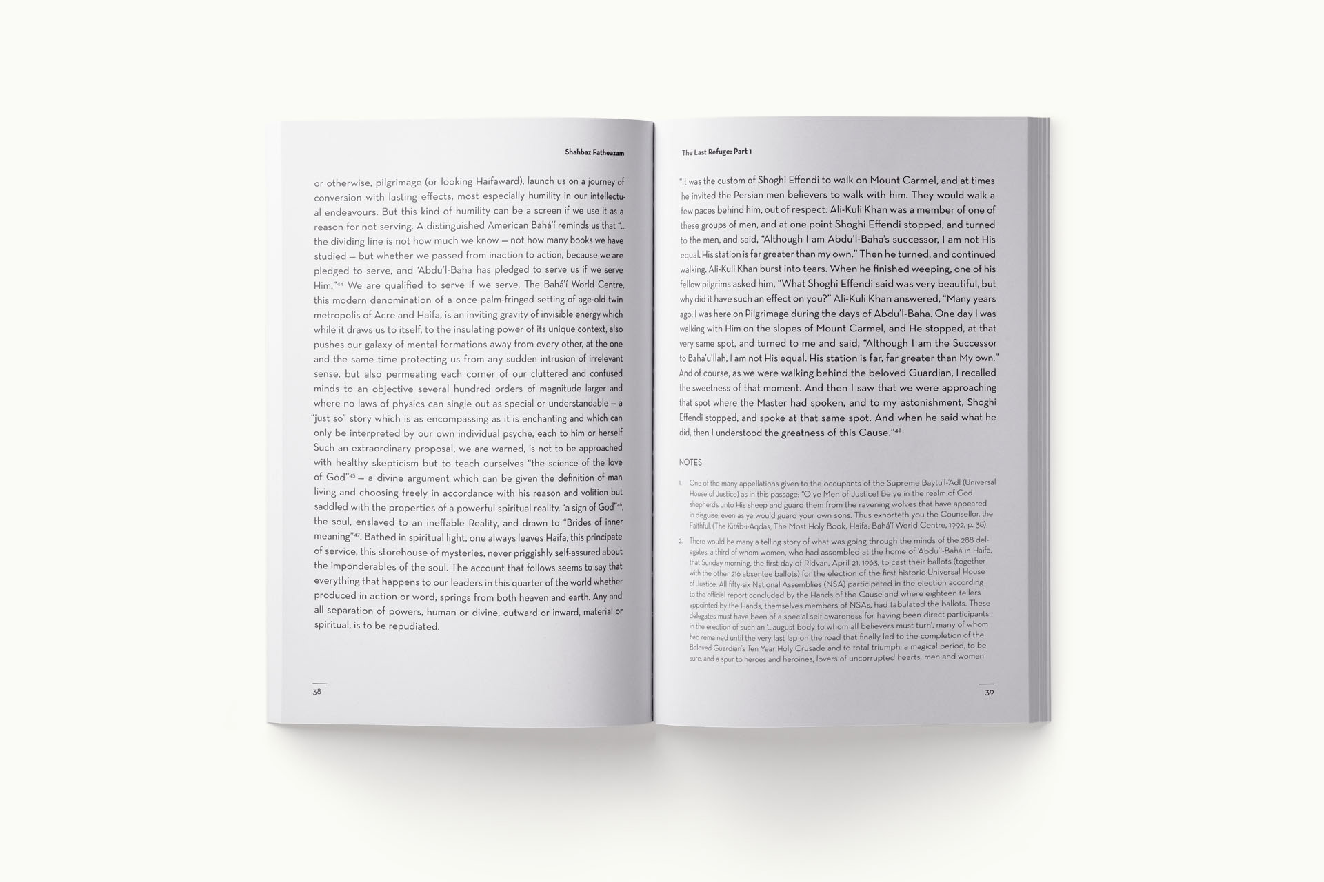 Cover and interior for a memoir on the formation of the Universal House of Justice